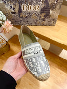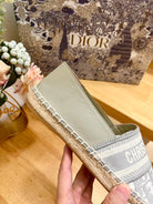 CD Granville Espadrille Grey Beige Oblique Jacquard Fabric And Calfskin