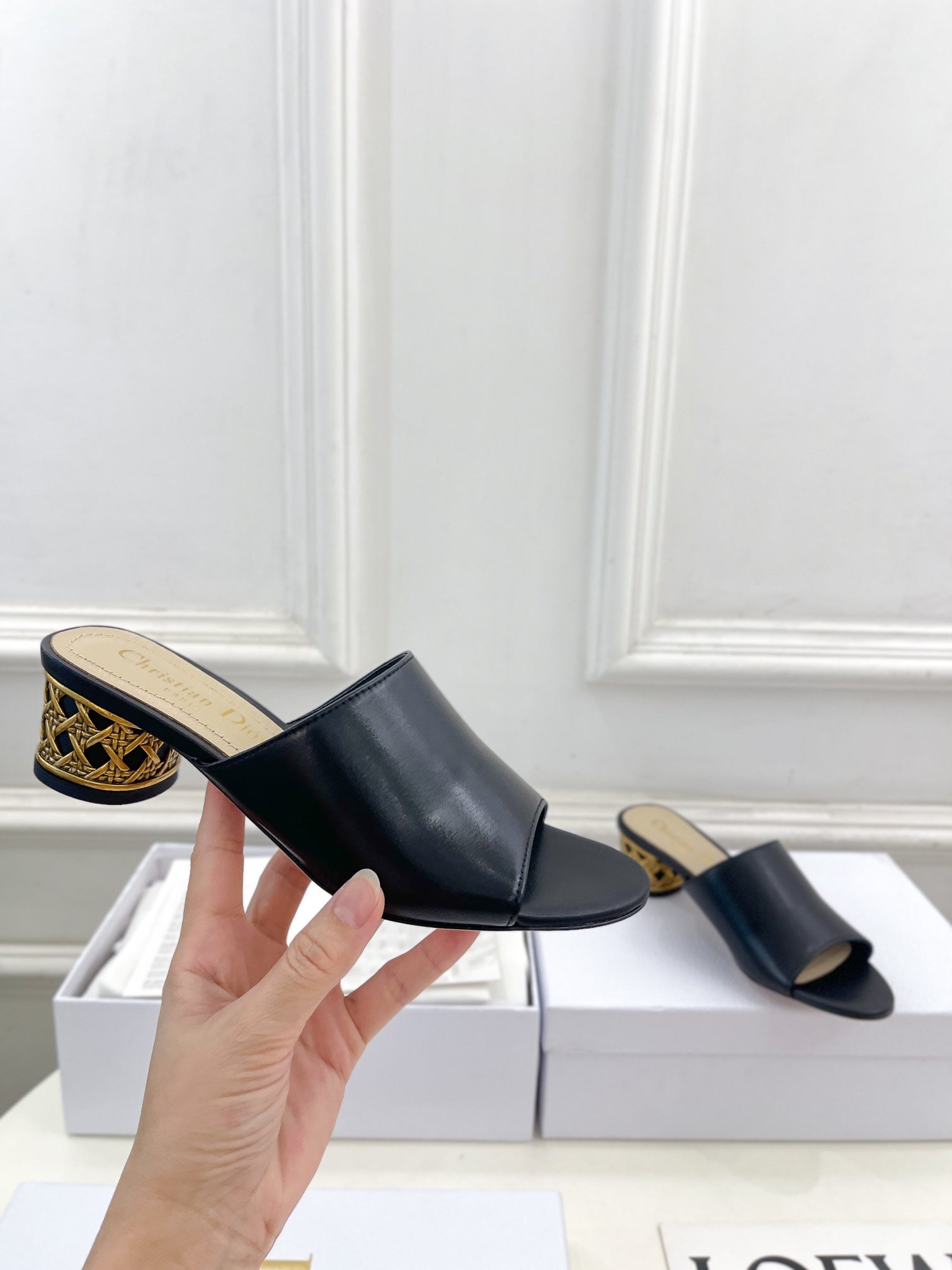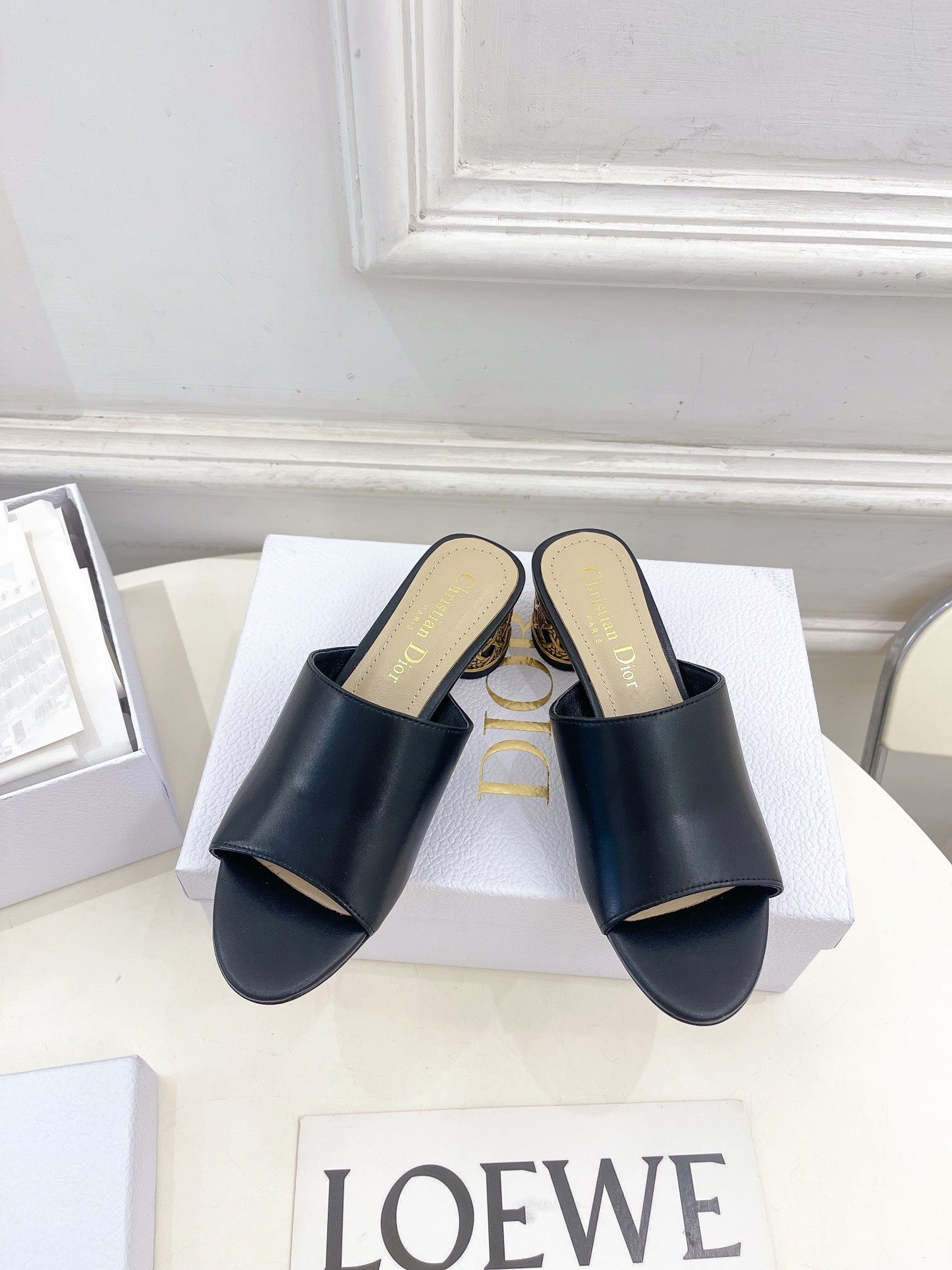 CD Icon Heeled Slide 40mm Black Calfskin