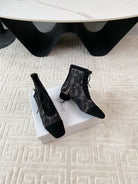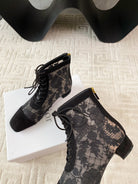 CD Naughtily-D Heeled Ankle Boot Black Transparent Mesh Roses Embroidery And Suede