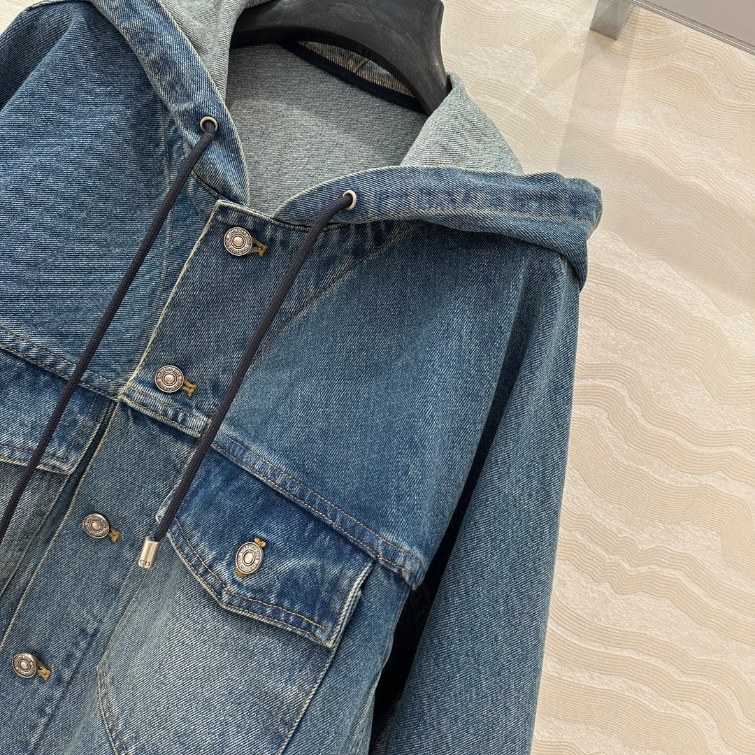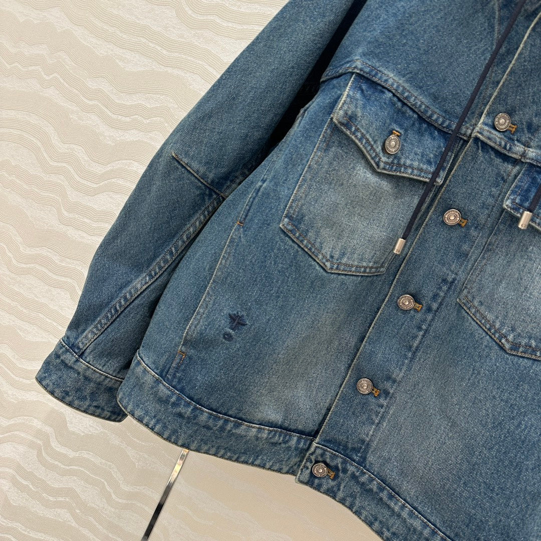 CD Ripped Straight Hooded Jacket Blue Cotton