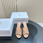 CD Tribales Heeled Slide 80mm Beige Lambskin And Studded With Stones