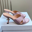 CD Tribales Heeled Slide 80mm Light Pink Lambskin And Studded With Stones