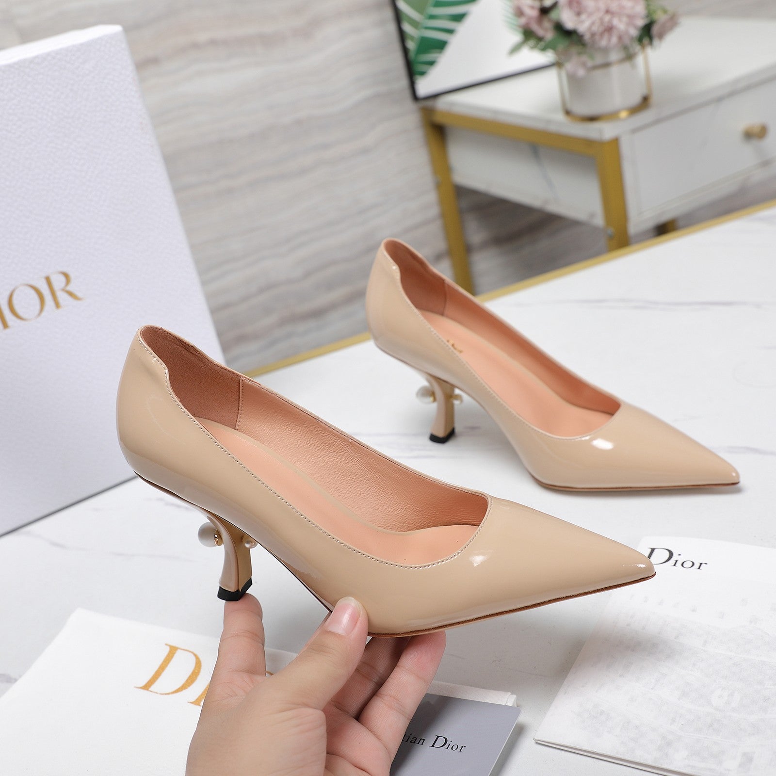 CD Tribales Pump 80mm Glossy Beige Cowhide