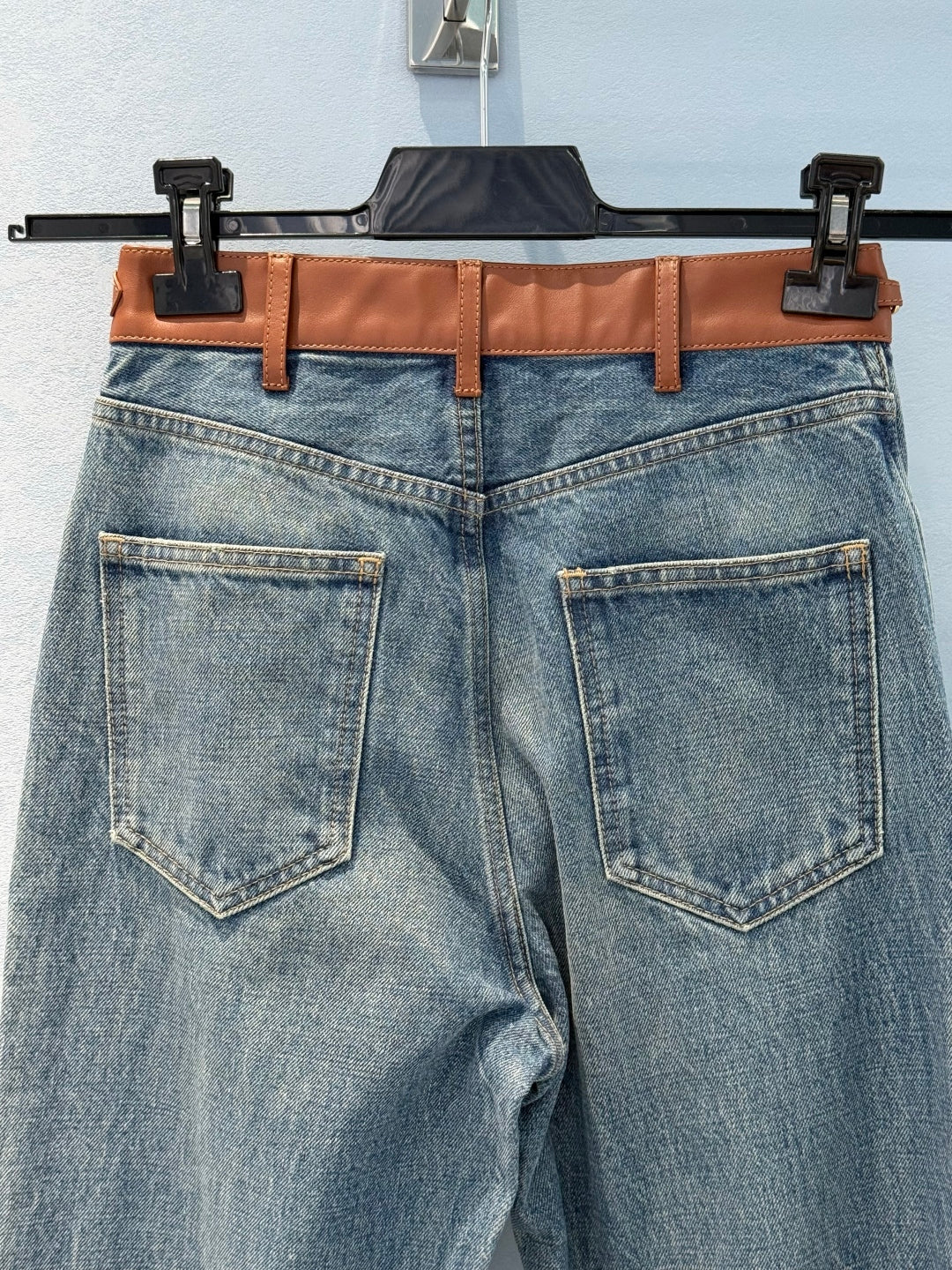 Celine Denim Jeans with Belt Blue mix Brown Cotton