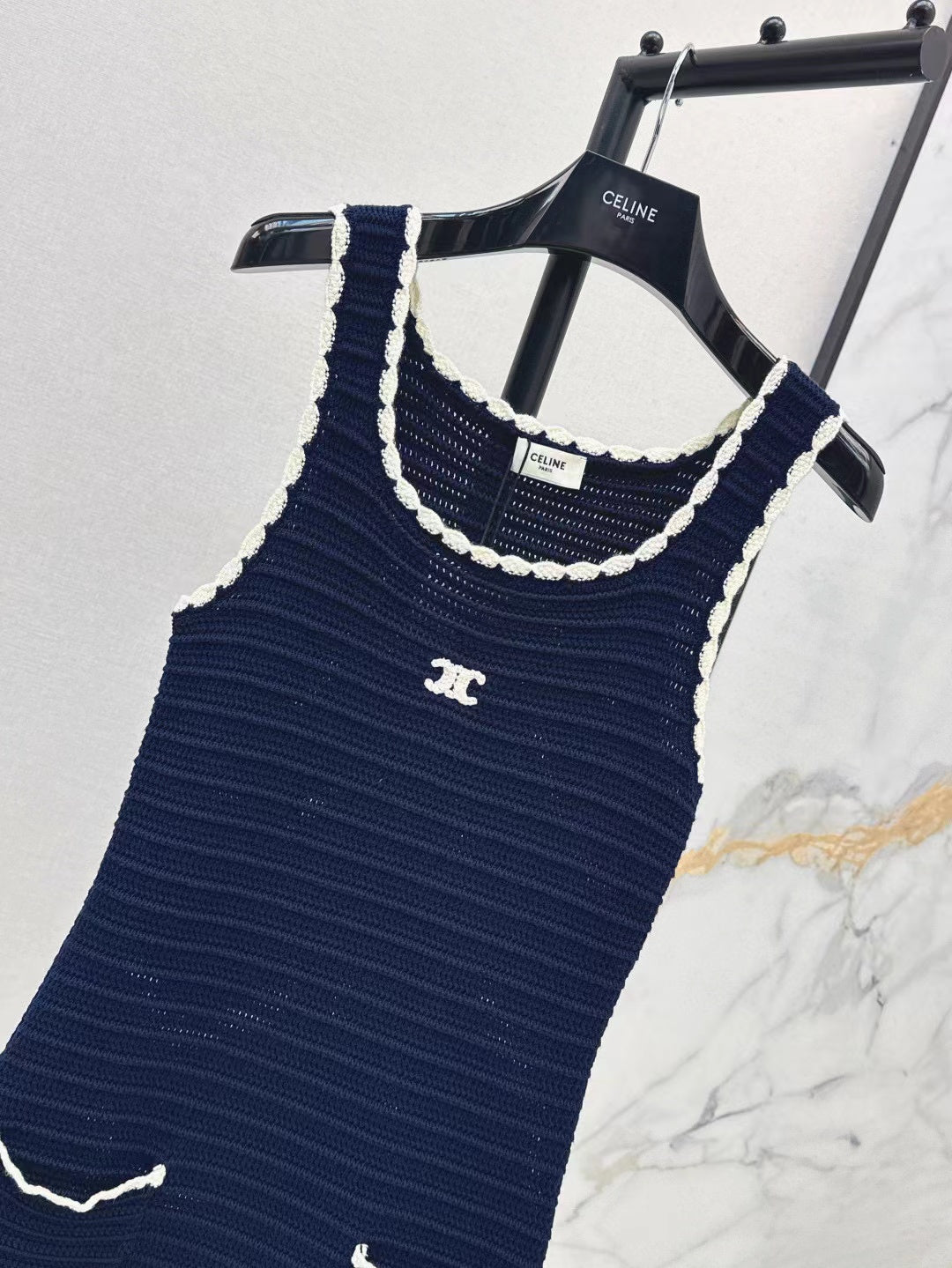 Celine Vest Dress Blue White Cotton