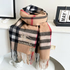 CHECK SCARF 180 CM IN CAMEL BEIGE CASHMERE 405487