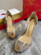 CL Very Strass Peep Toe Pumps 120mm PVC and Glitter Gold