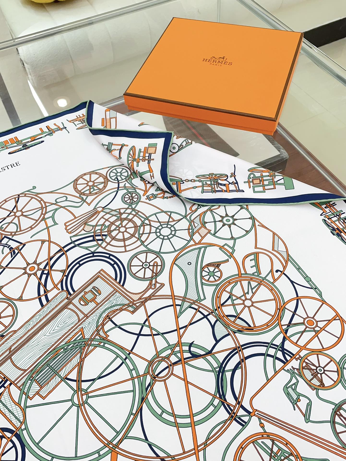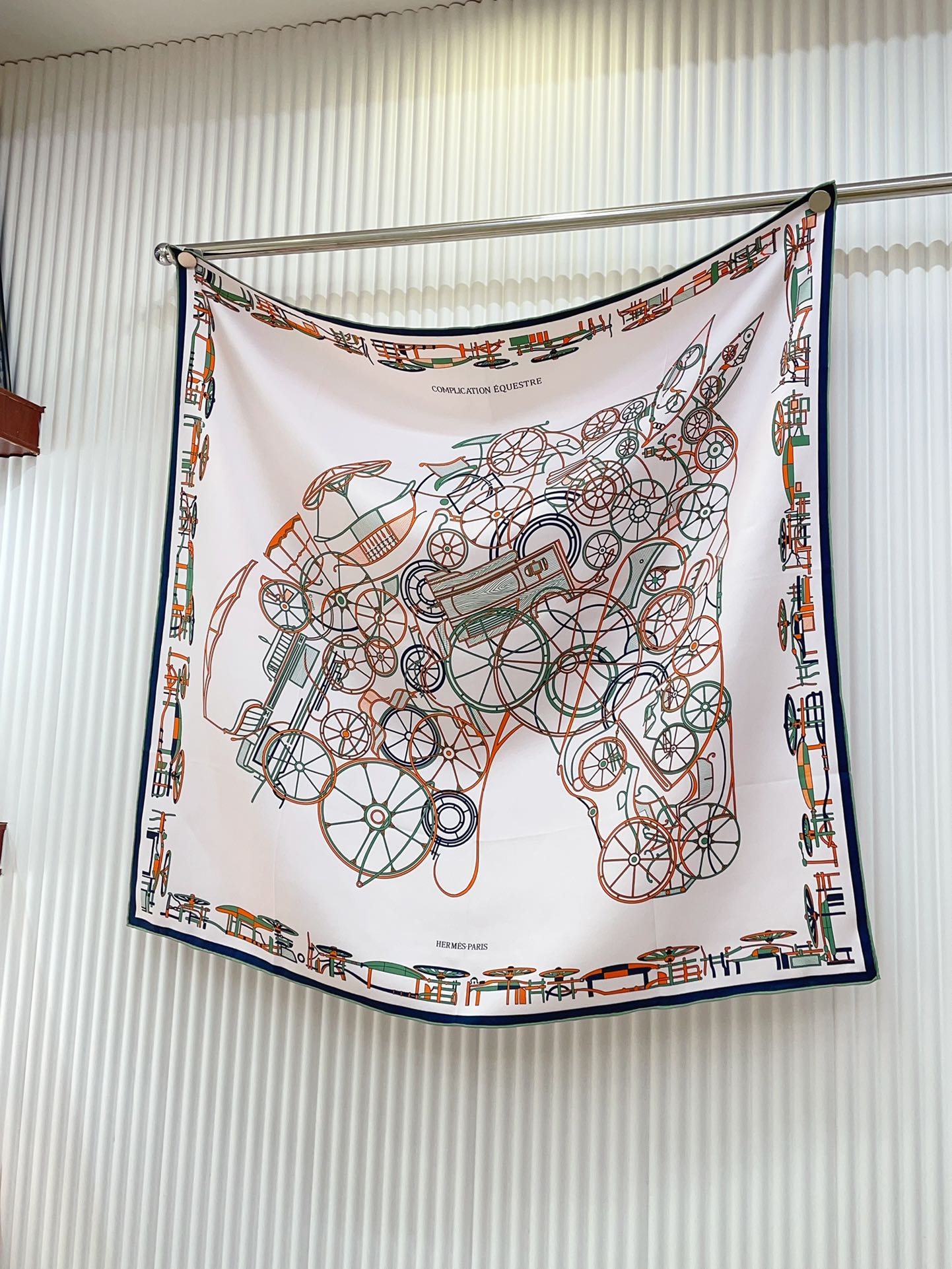 Complication Equestre Scarf 90 CM In White Red Coloful Silk Twill 345900