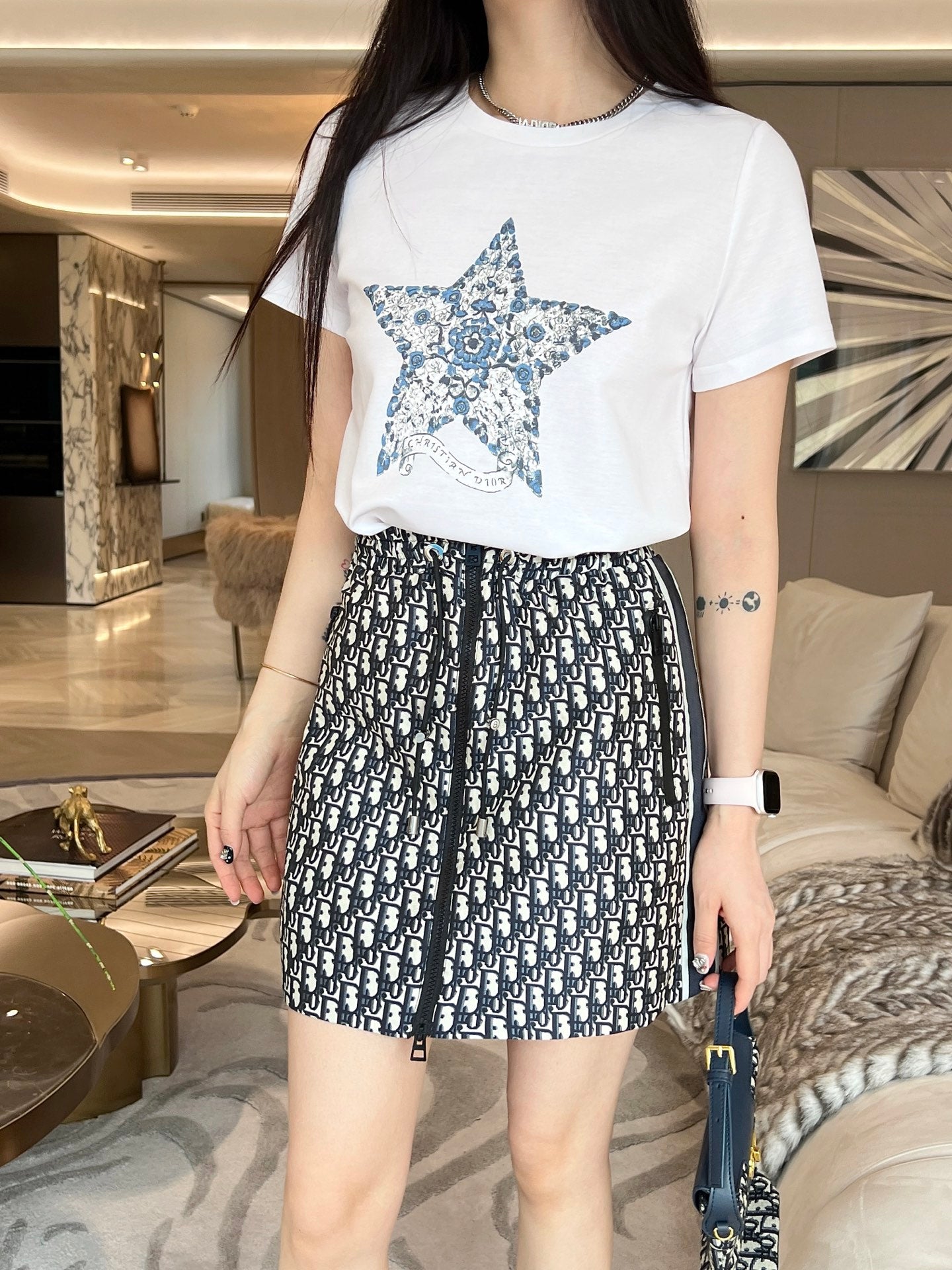 Dior 25C Embroidered T-shirt mix Skirt Dior Monagram 228675