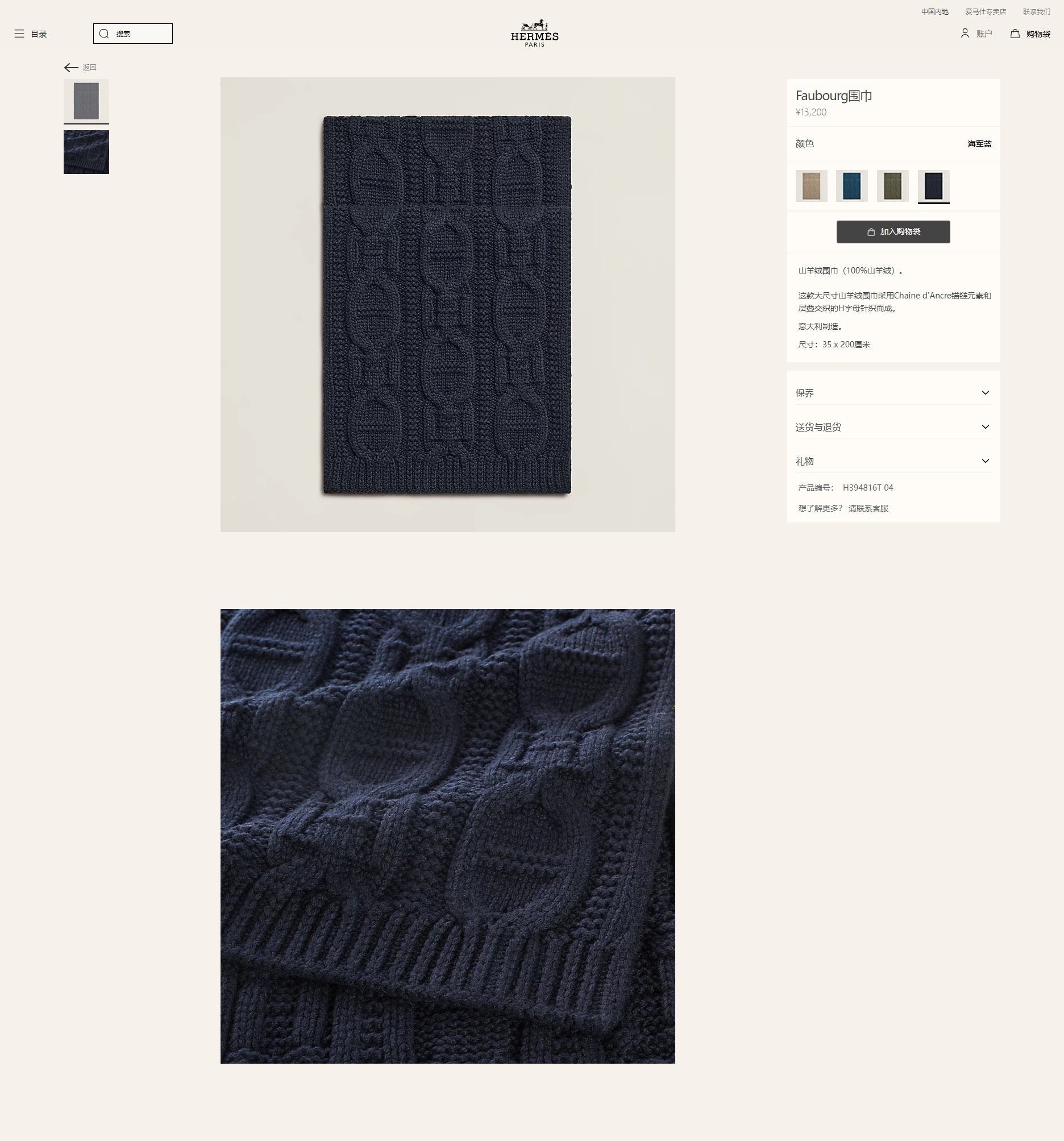 Faubourg Muffler Scarf 170 CM Grey Cashmere Handwoven 356204