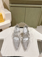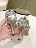 FENDI COLIBRÌ HIGH-HEELED SLINGBACKS 75MM IN LIGHT GREY FABRIC