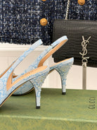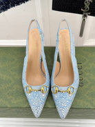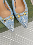 GG Horsebit Slingback 85MM Beige Cloud Blue Monogram Canvas Point Toe Crystal-Embellished