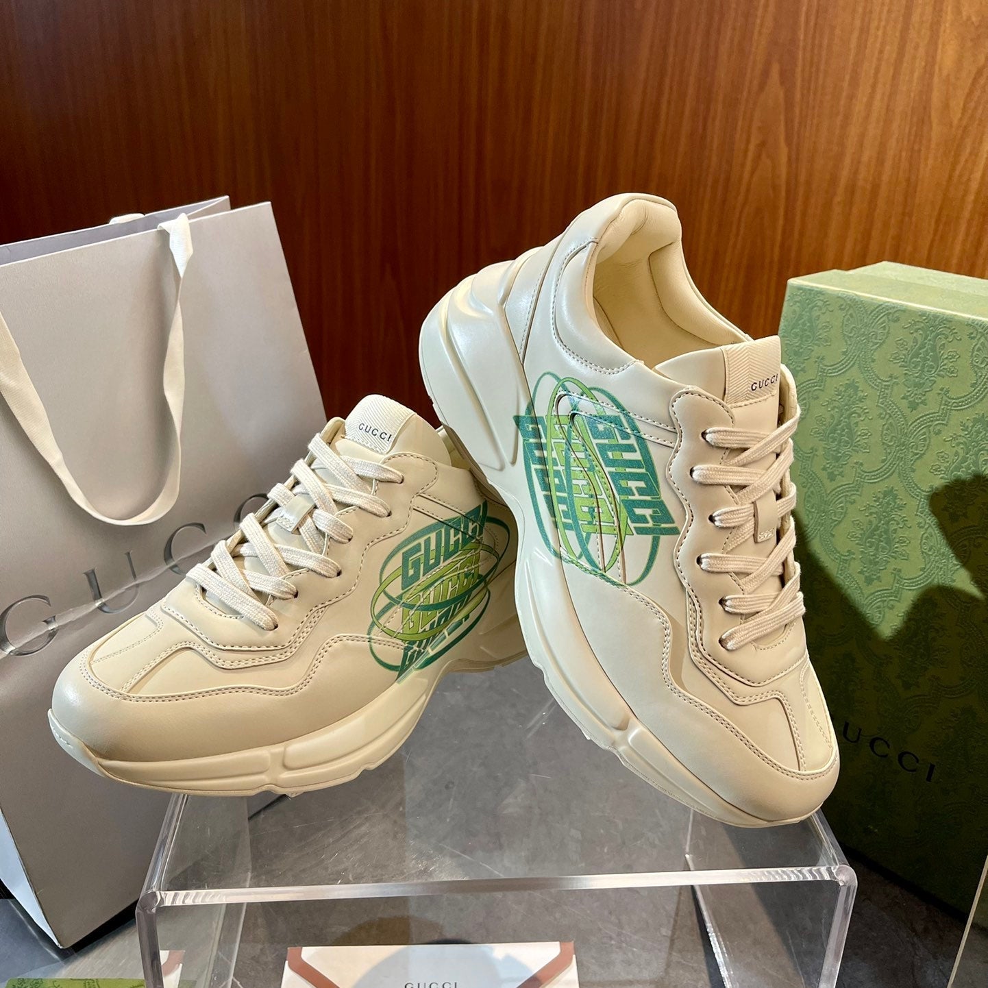 GG Men's Rhyton Sneaker Milk White Calfskin 524489