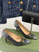 GG Pump 85 Black Ebony Canvas Crystal-Embellished