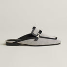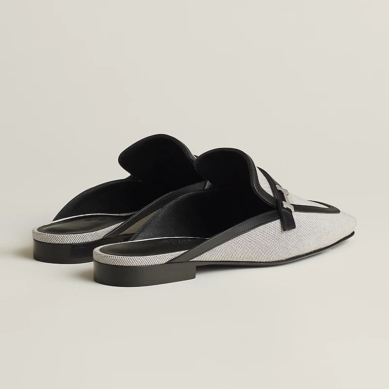 • Material: Mule in H canvas and calfskin with miniature permabrass-plated Paris buckle and contrasting piping.