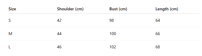 • Size: S, M, L