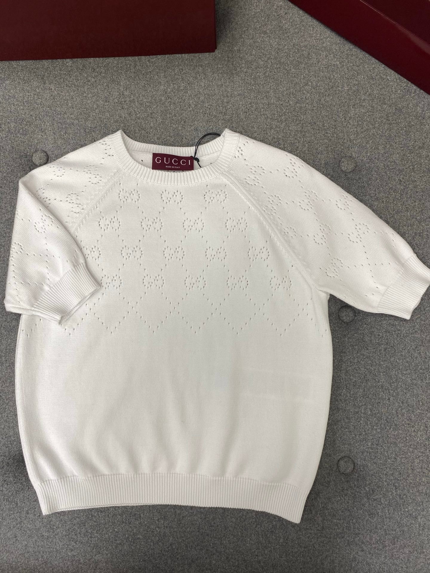 Gucci Round Neck Short Sleeves Top White Cotton