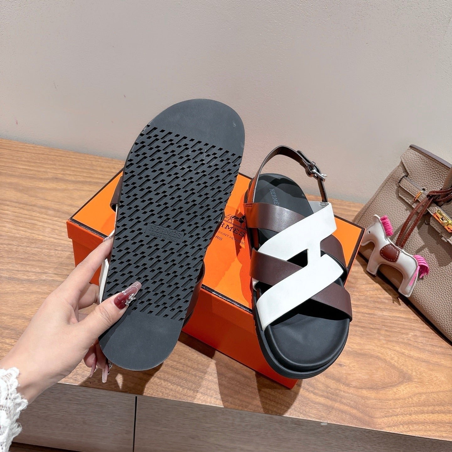HM 25 Heracles Sandal White Burgundy Calfskin