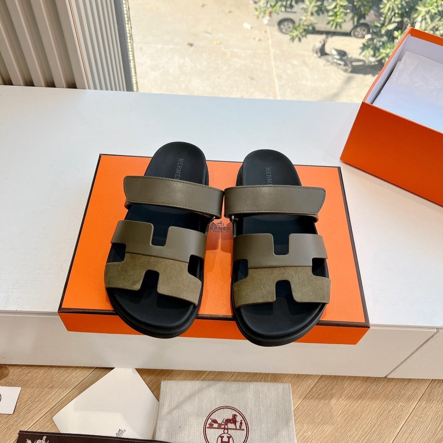 HM Chypre Sandal Army green Calfskin 202818