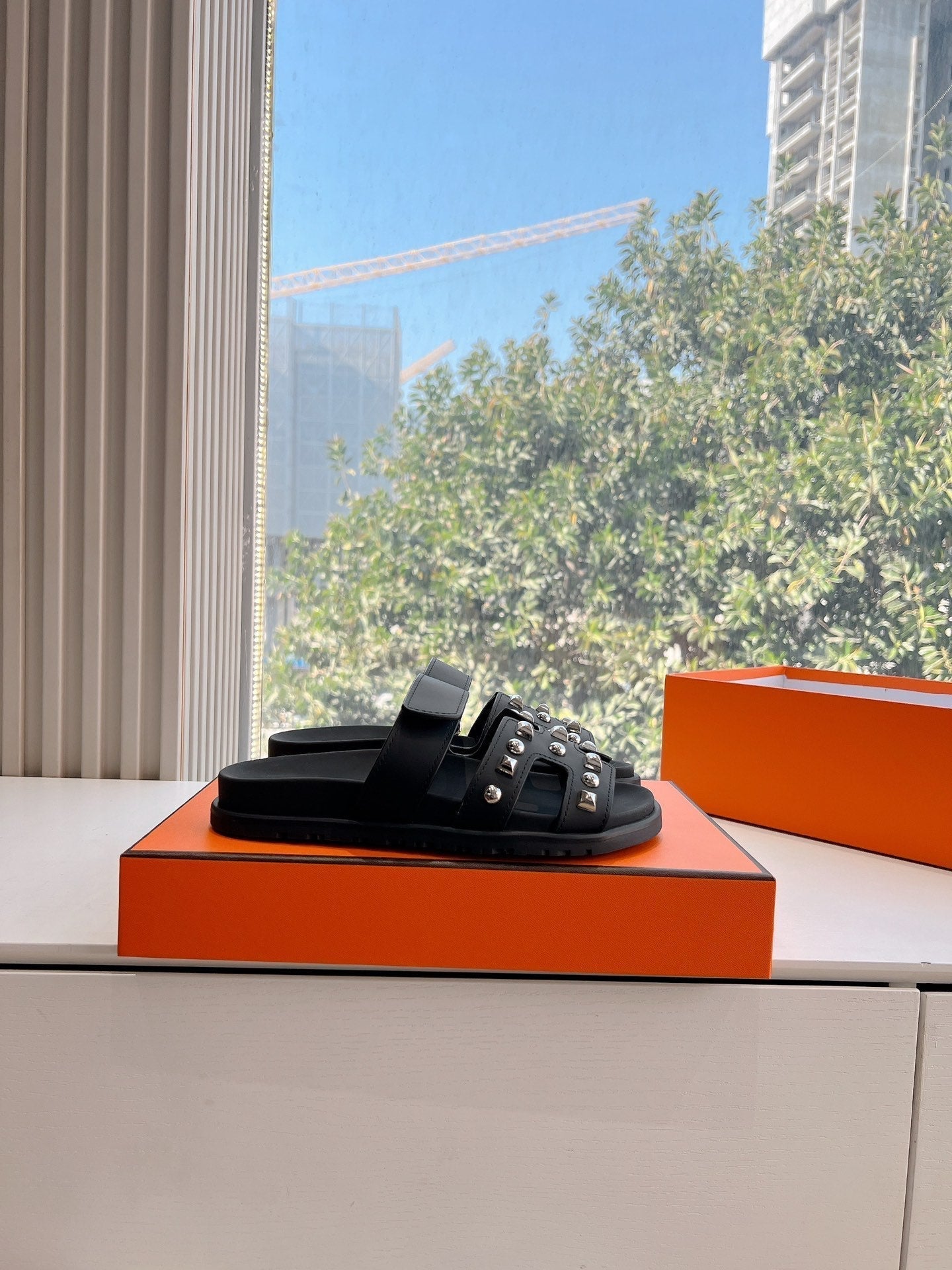 HM Chypre Sandal Black Calfskin mix Studs 202820