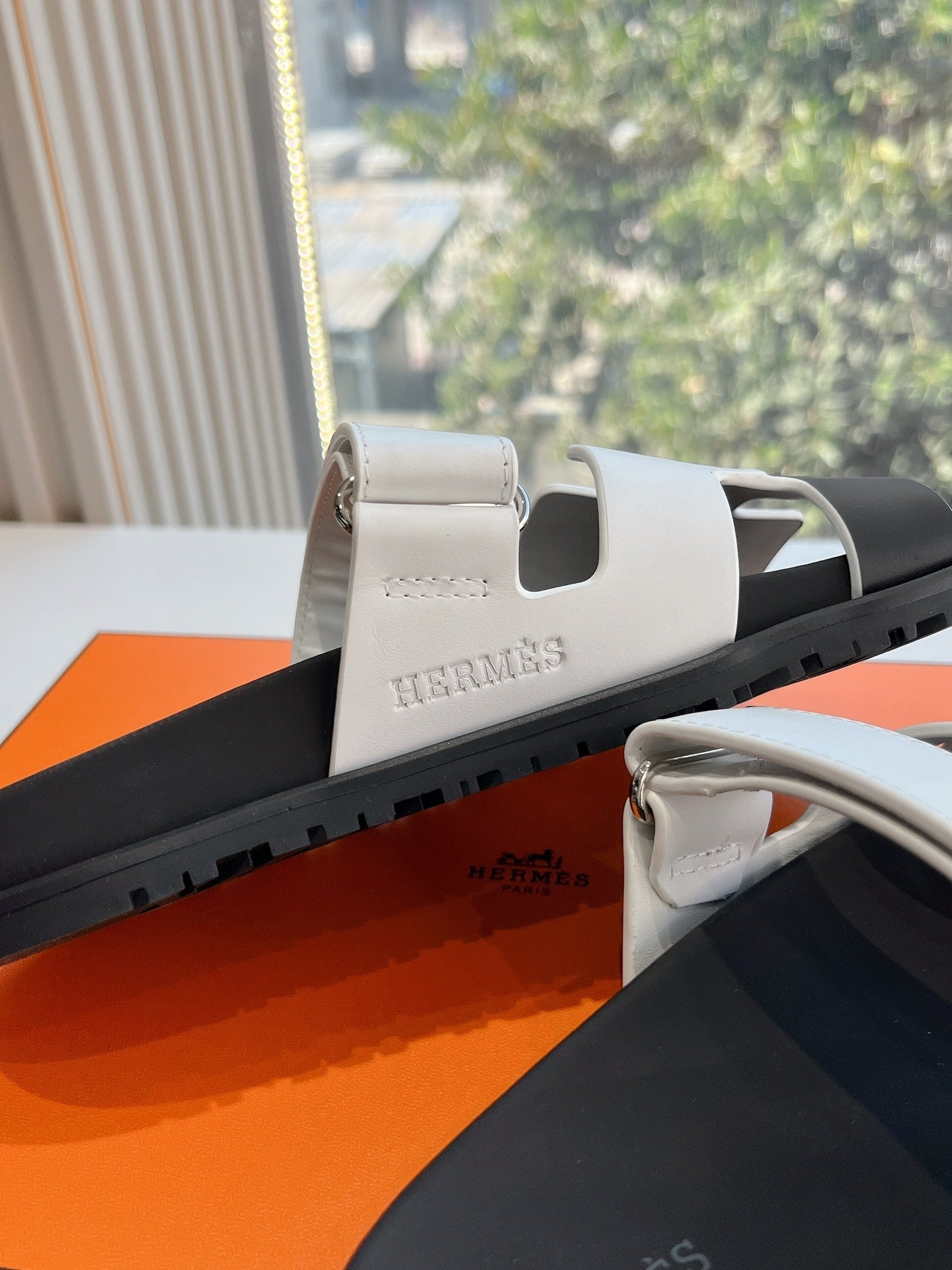 HM Chypre Sandal White mix Black Calfskin 202816