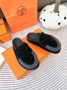 HM Go Mule Black Mix Grey Black Suede Lined With Wool Fleece 963221