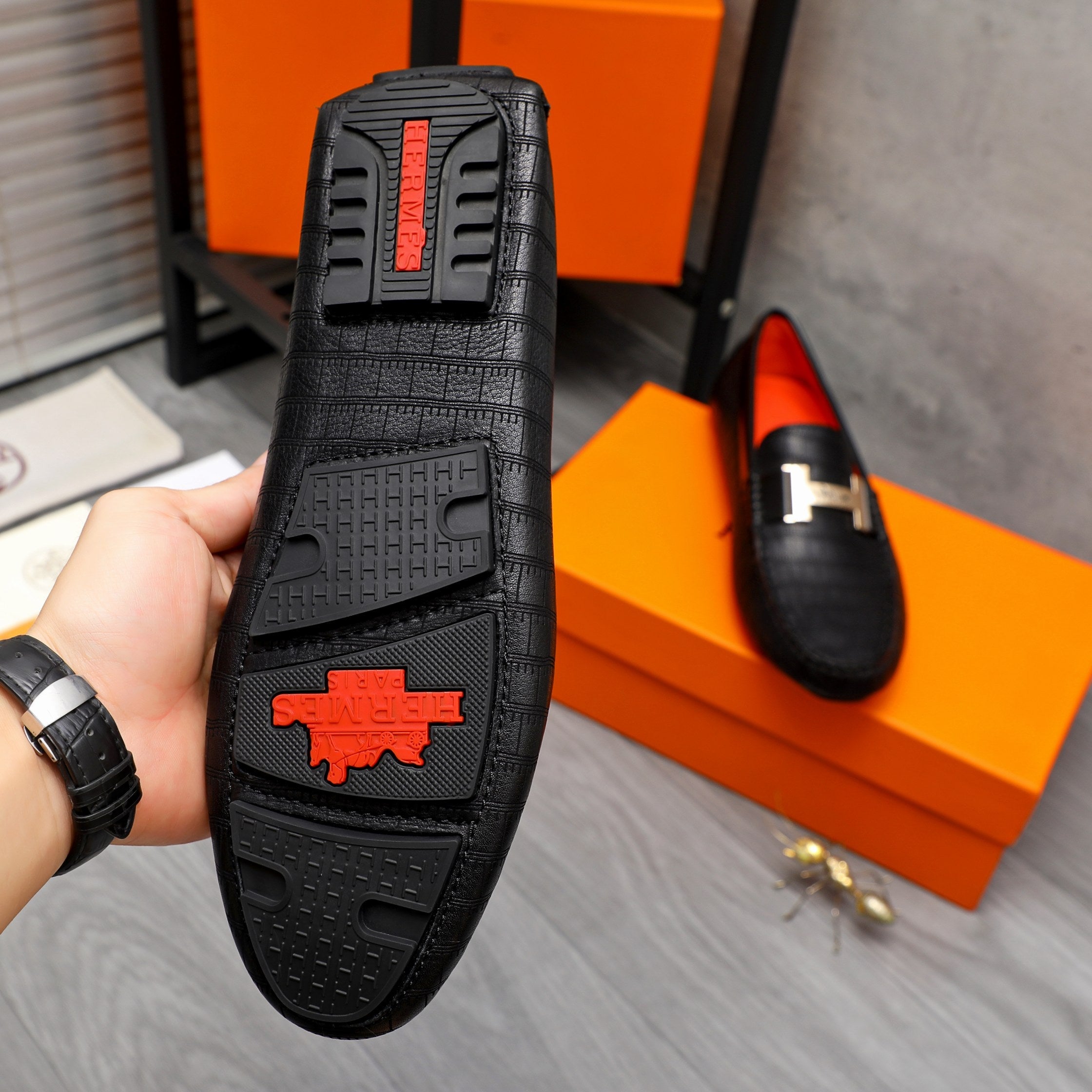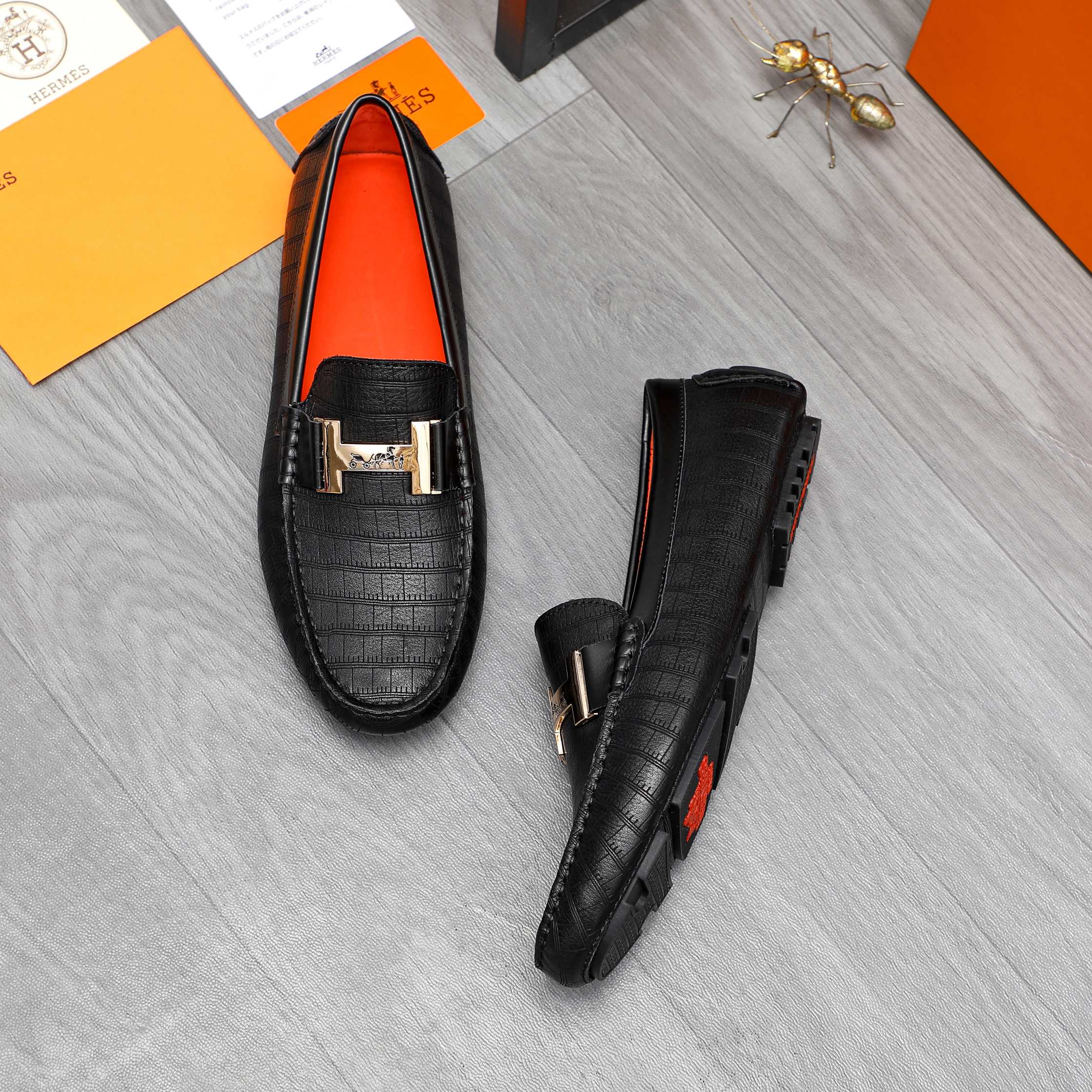 HM H-BUCKLE LOAFER BLACK EMBOSSED CALFSKIN