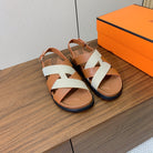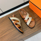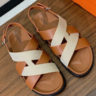 HM Heracles Sandals Brown Beige Frabic Calfskin 294068