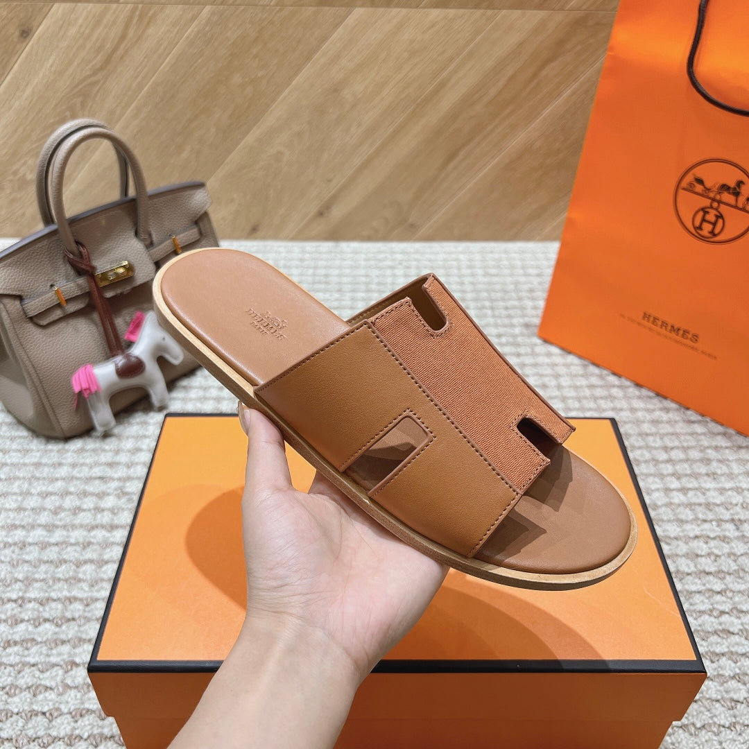HM Izmir Sandals Brown Fabric Calfskin 294952