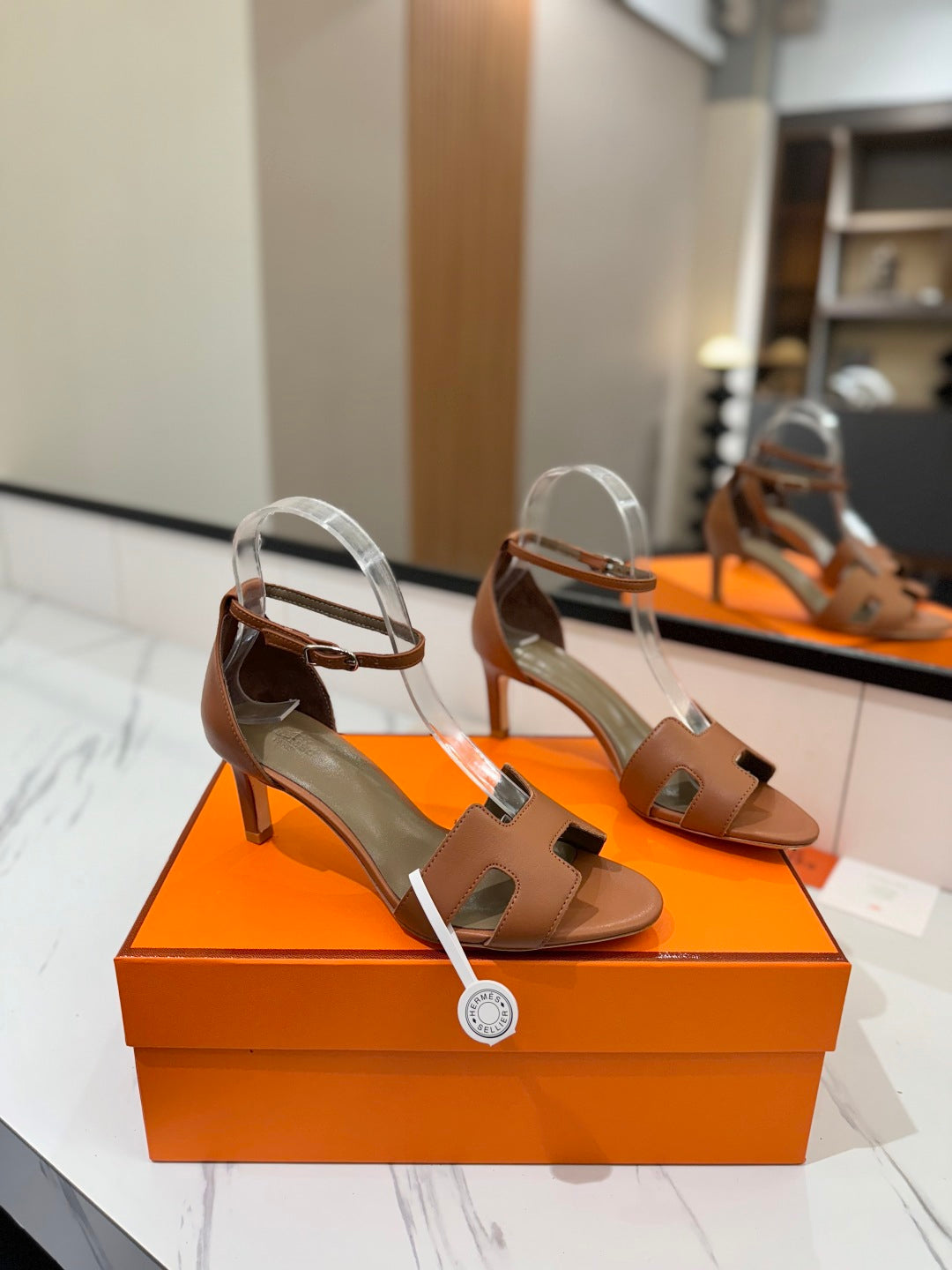 HM Joy 65mm Heeled Sandals Brown Flat Cowhide 294927