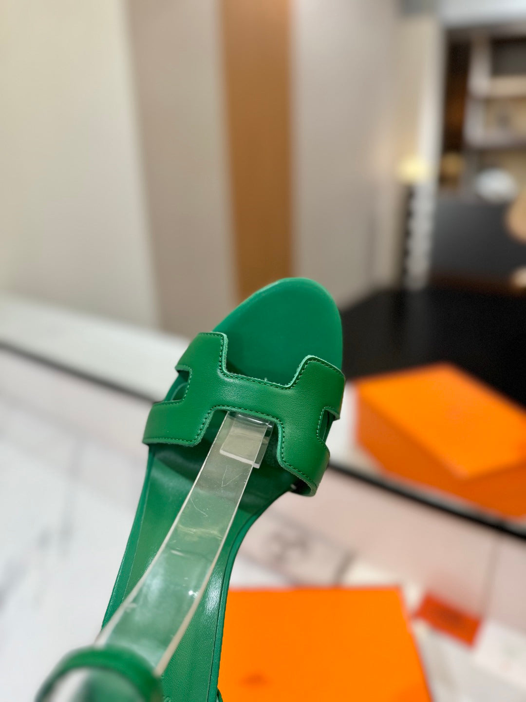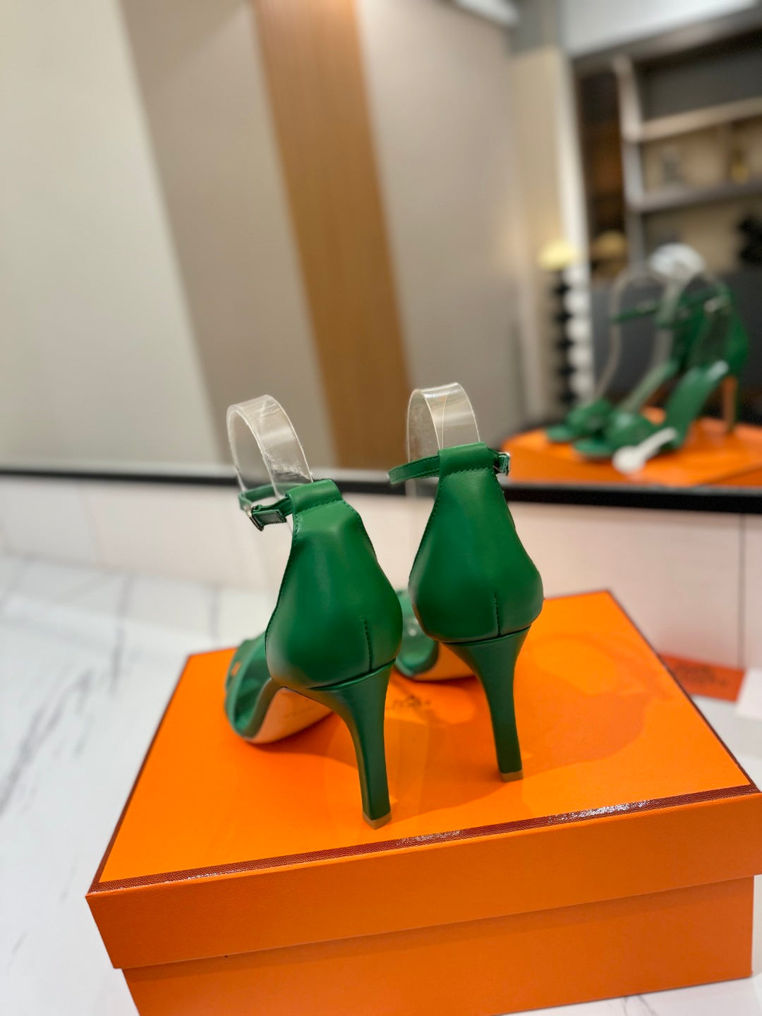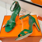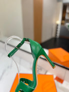 HM Joy 90mm Heeled Sandals Green Flat Cowhide 294920