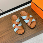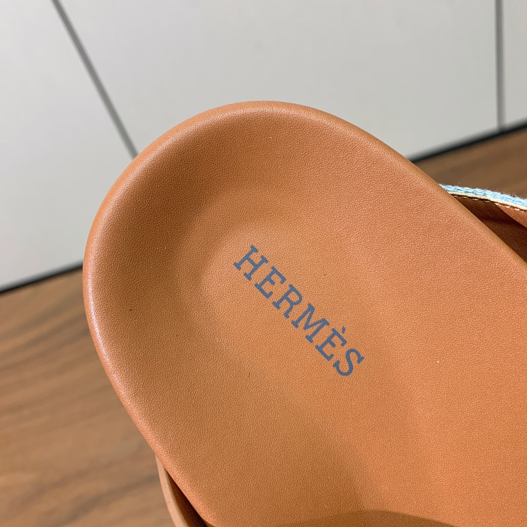 HM Kazimir Sandal Light Blue Brown Canvas Calfskin 294000