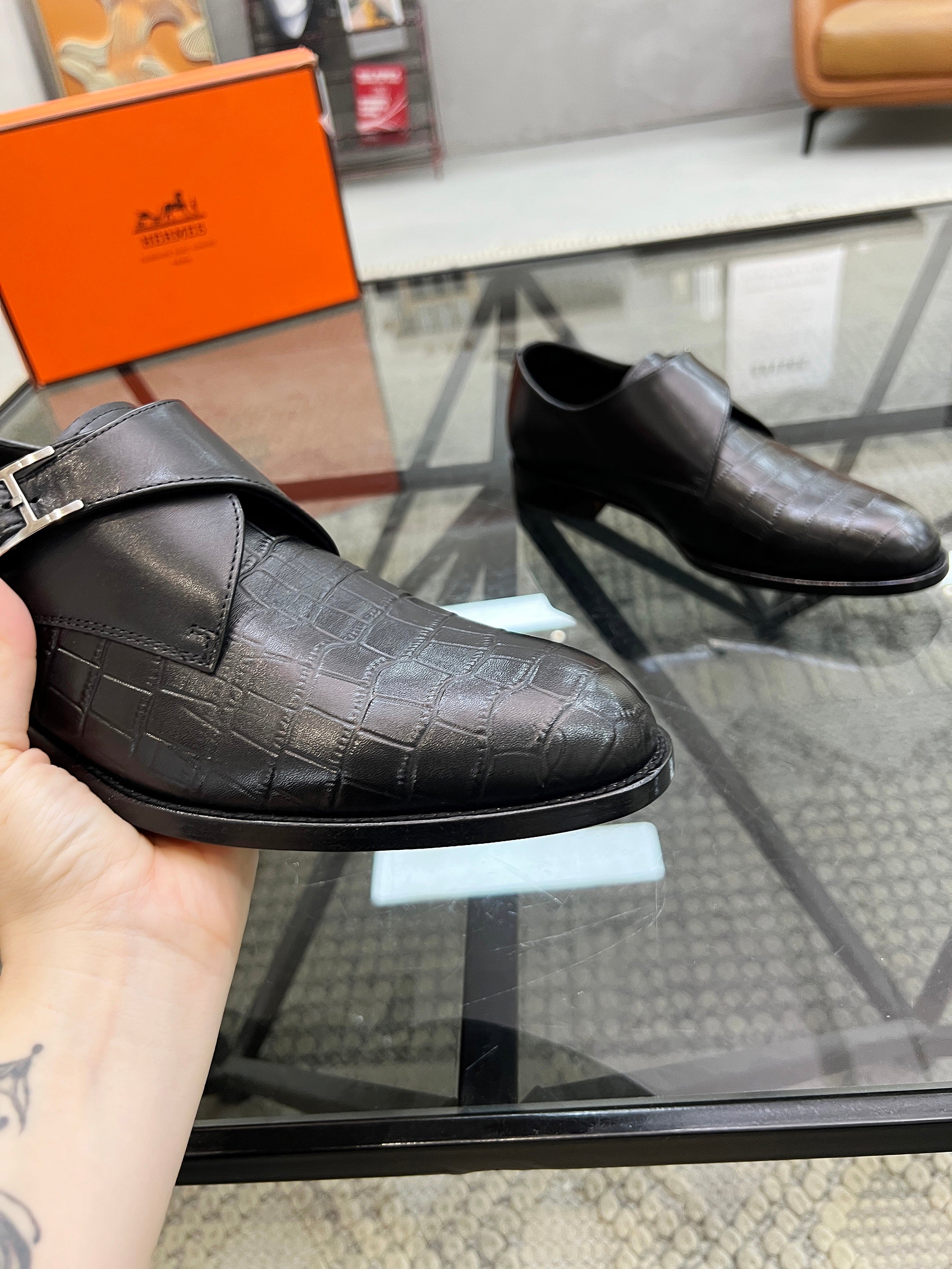 HM Men's Loafer Embossed Black Cowhide 638516