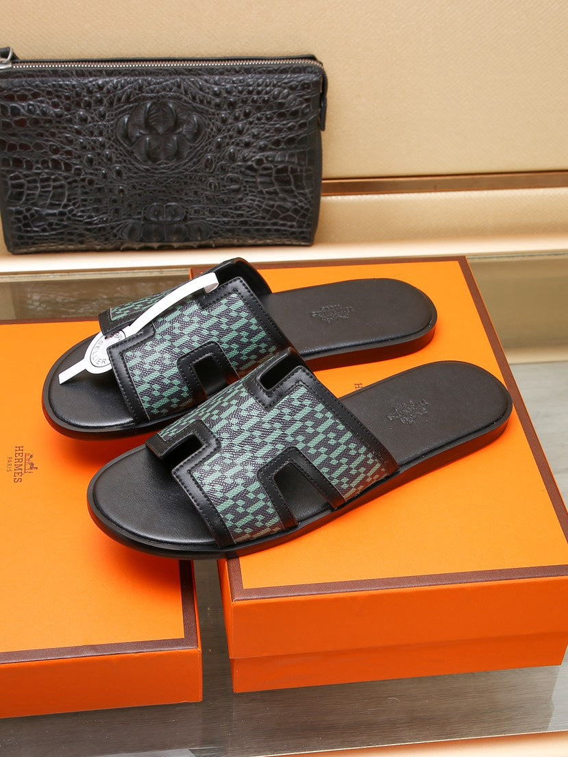HM ORAN SANDAL BLACK AND SAPPHIRE LAMBSKIN