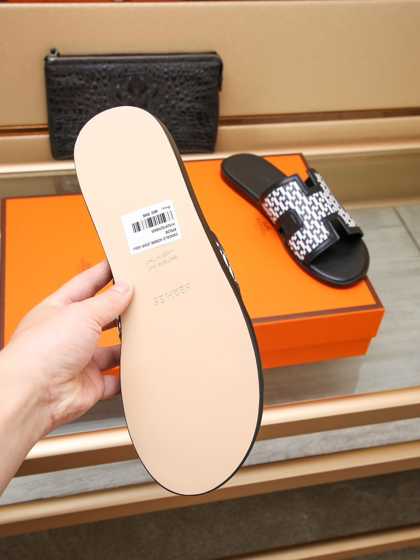 HM ORAN SANDAL BLACK AND WHITE LAMBSKIN
