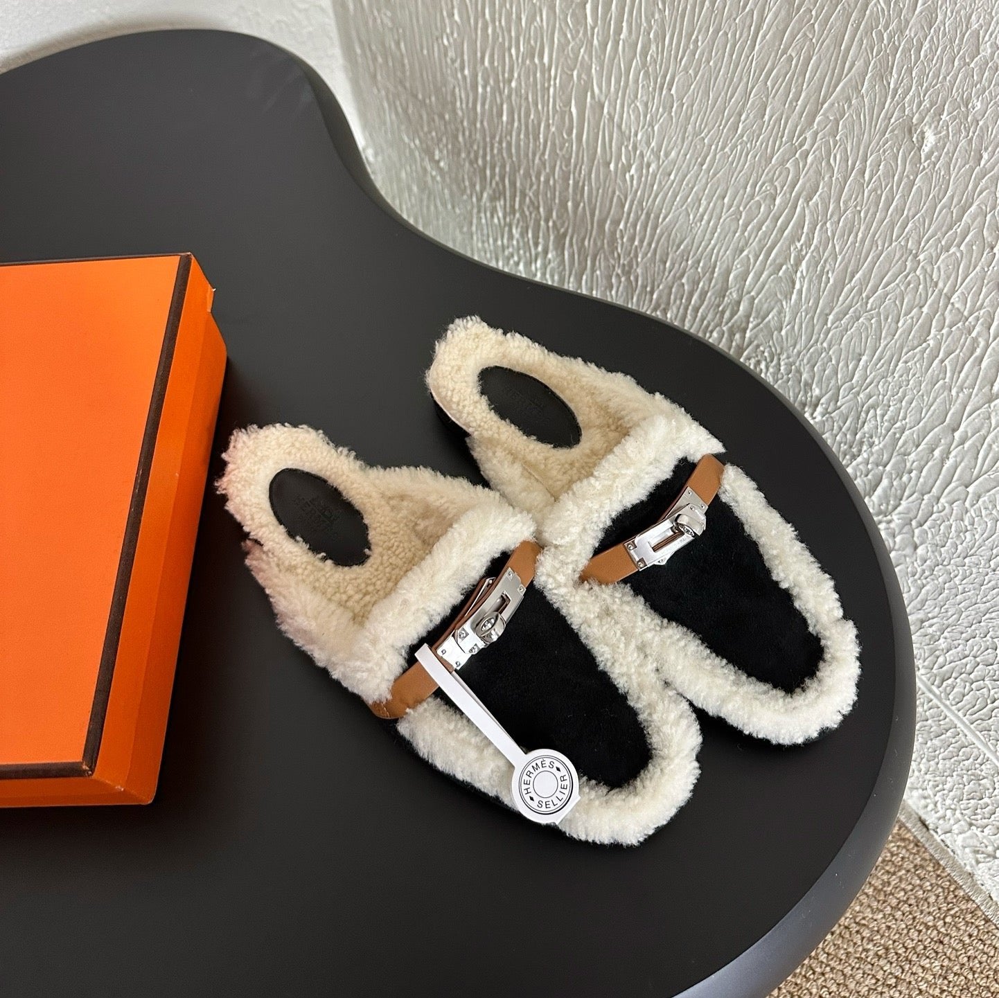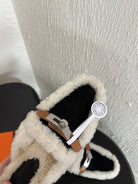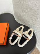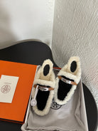 HM Oz Mule Black Mix White Suede Lined With Wool Fleece 961091