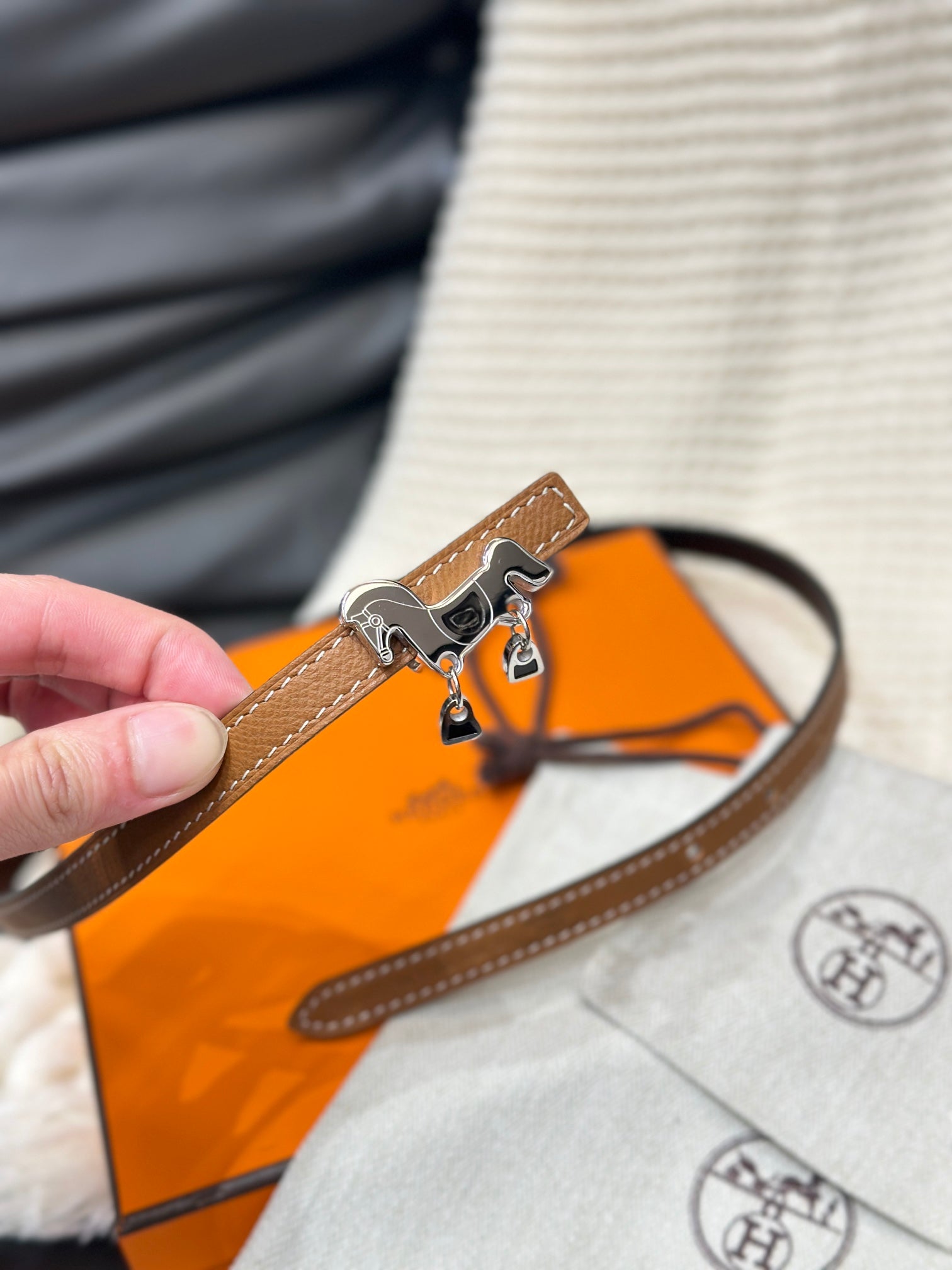 HM ROULIS SILVER BUCKLE & REVERSIBLE TAN BROWN LEATHER STRAP 13MM