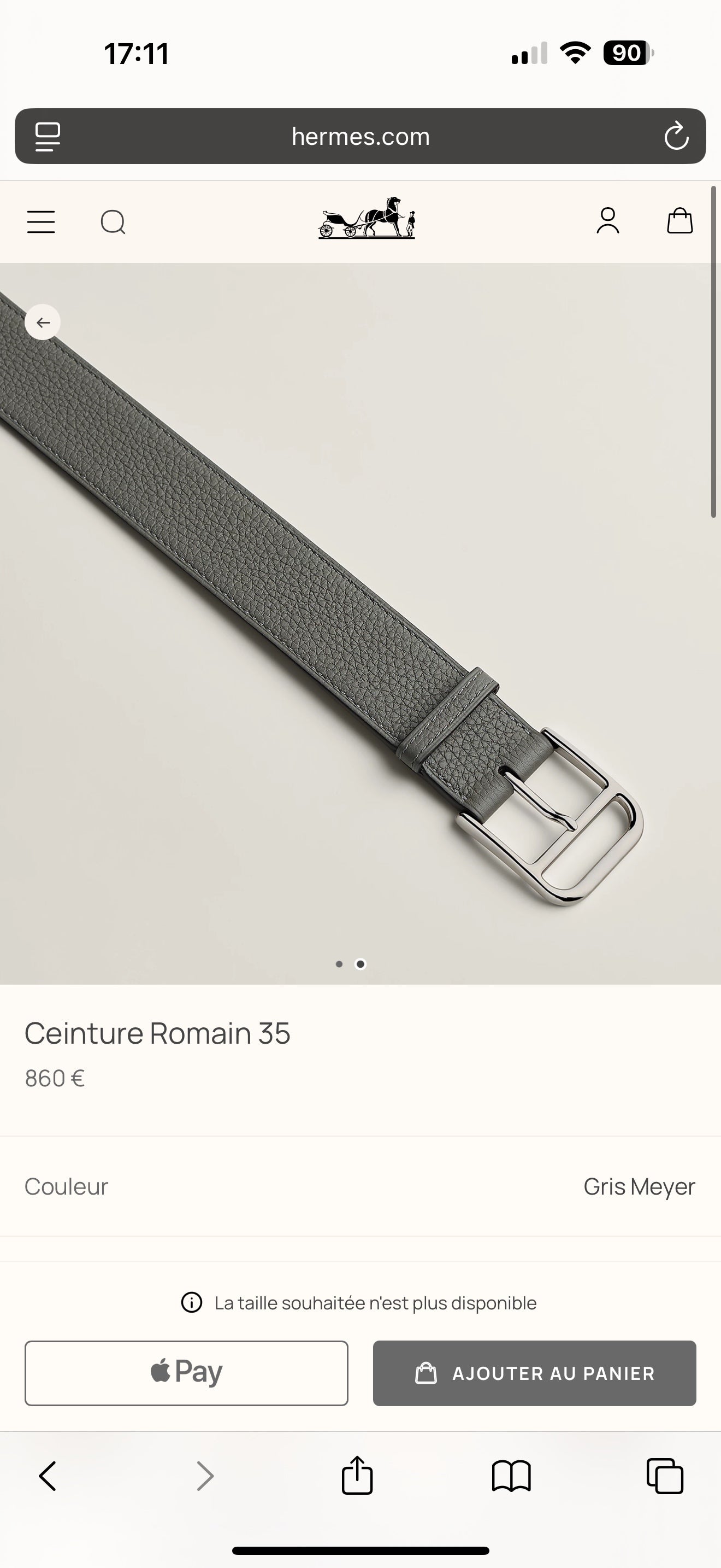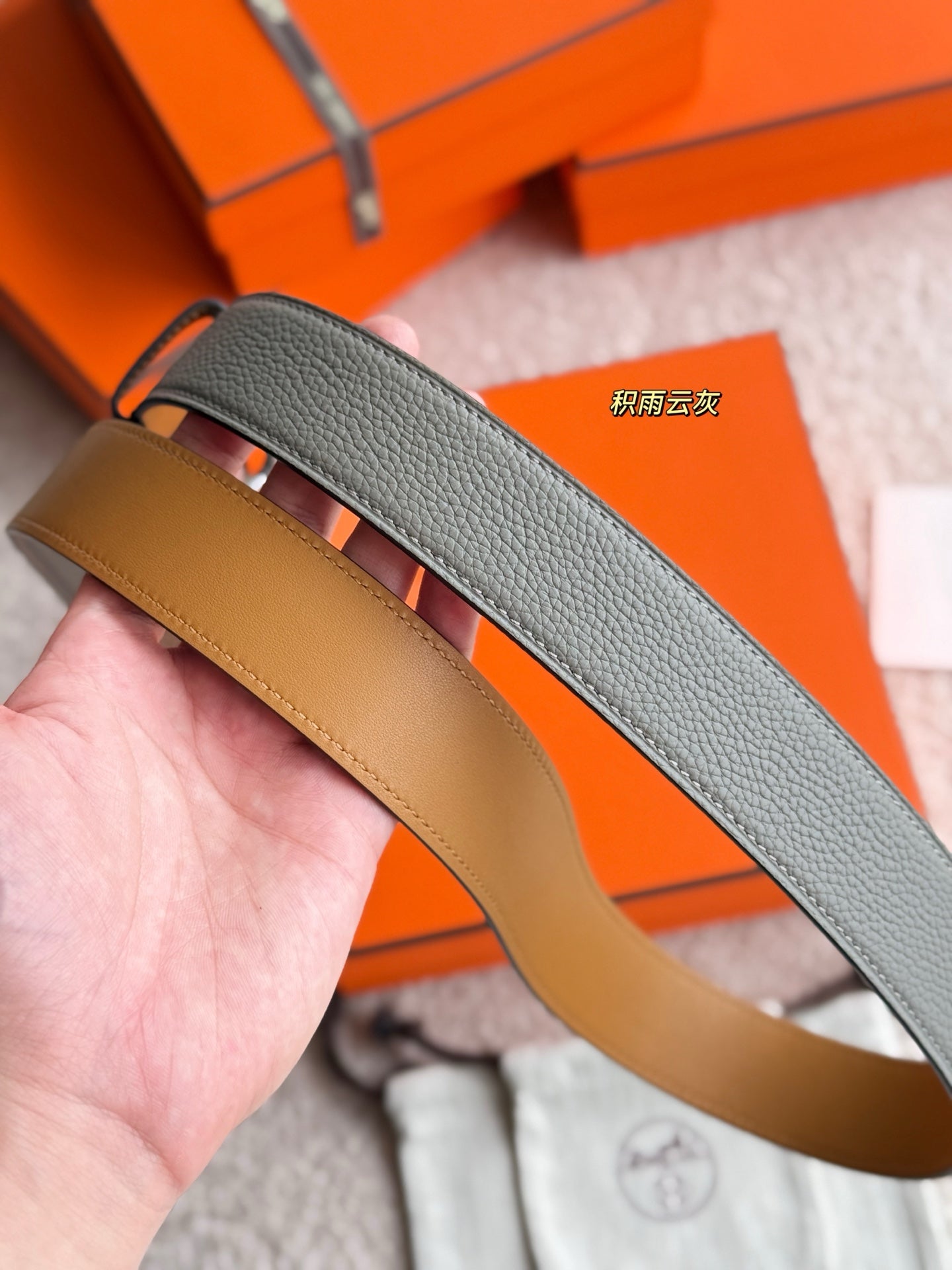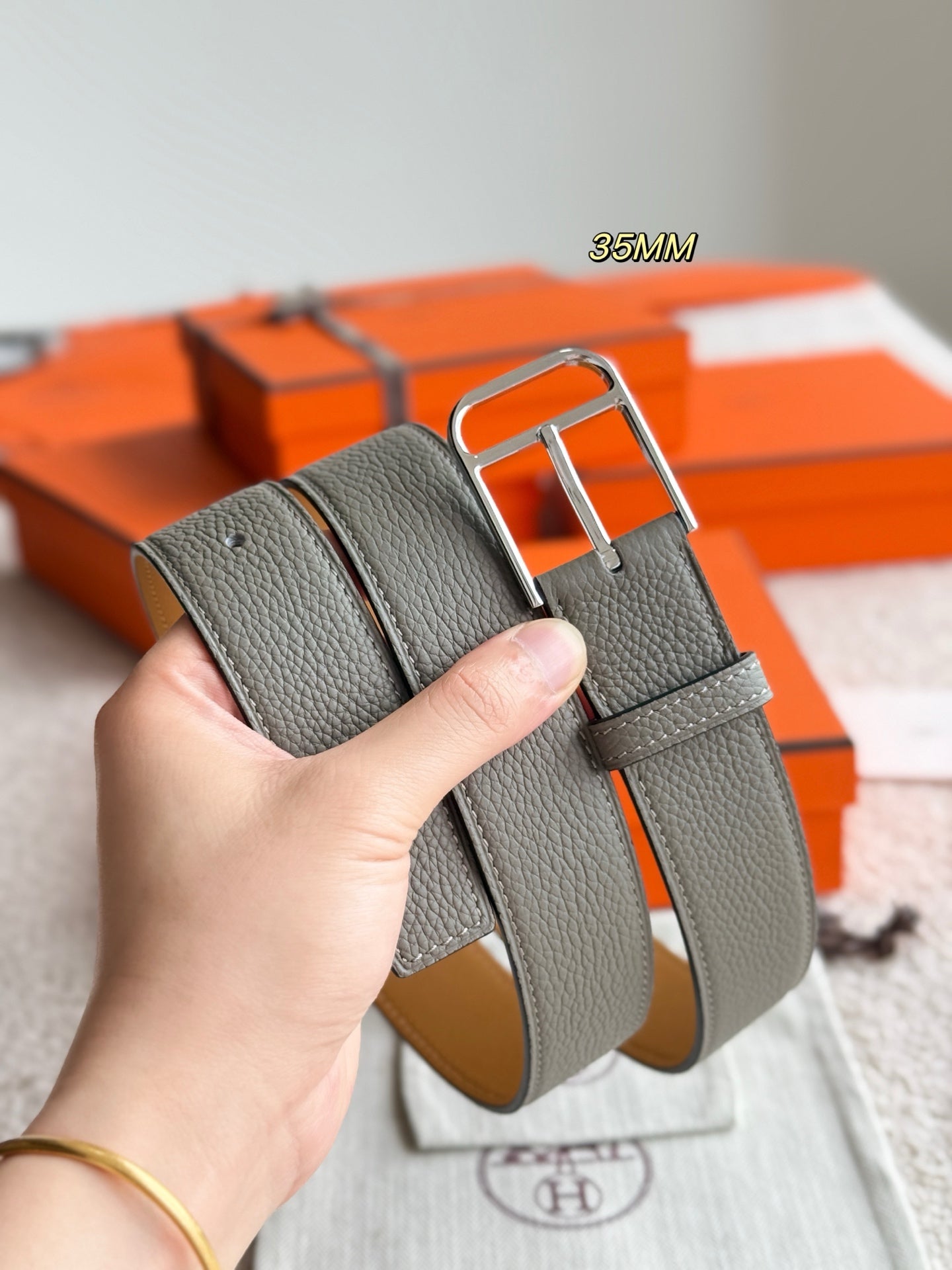 HM Silver 35mm Romain Belt Meyer Gray Leather 188402