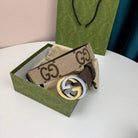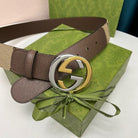 INTERLOCKING G GOLD GREY BUCKLE 40MM BEIGE CANVAS