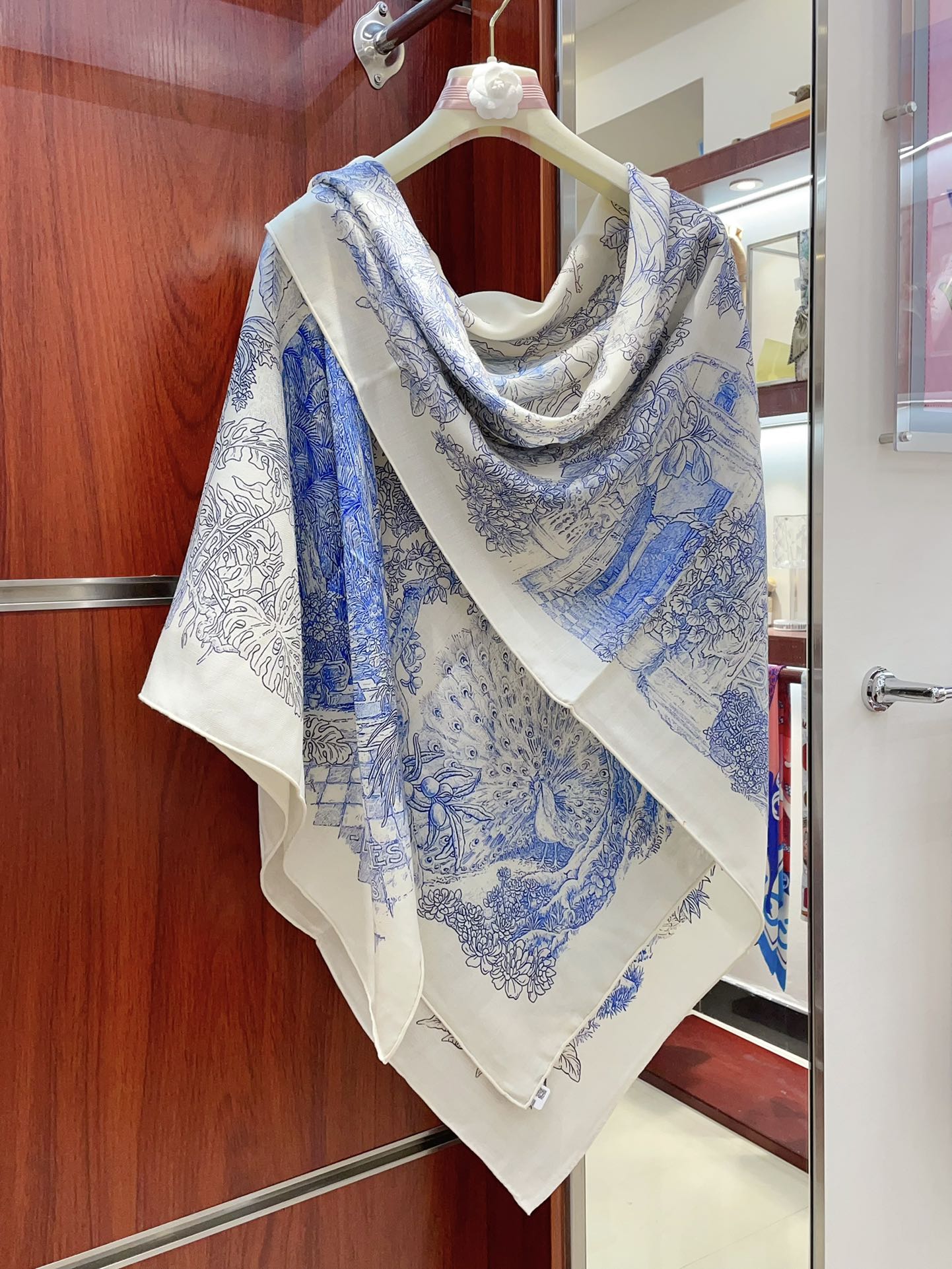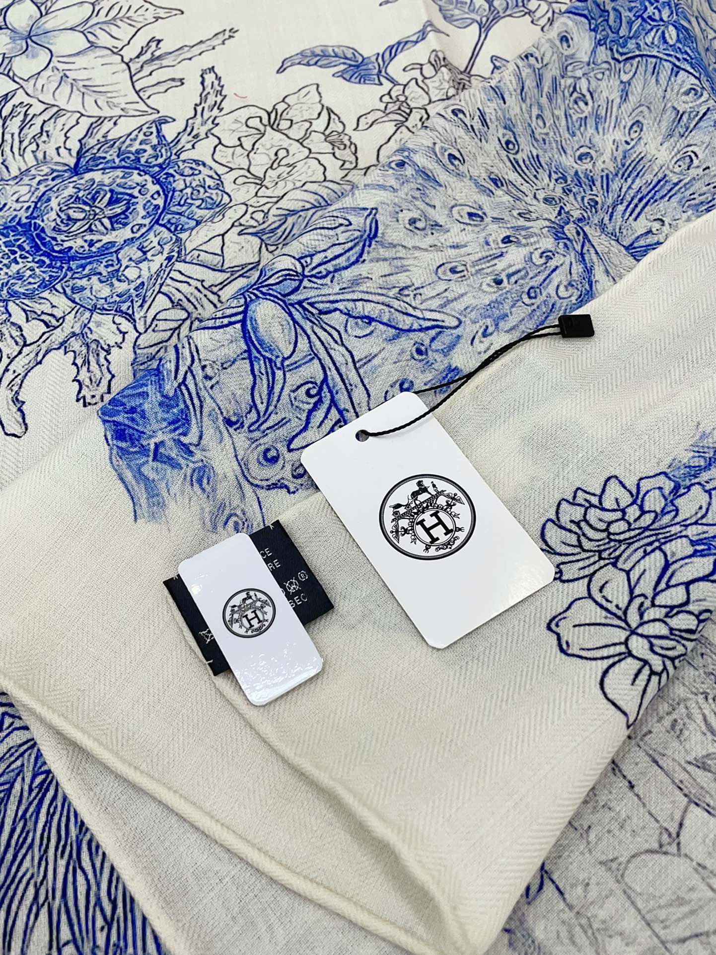 Le Jardin De Leila Au Bloc Shawl 135 CM In Blue Cashmere And Silk 316262