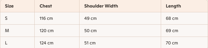 - For more information, please see the size guide below