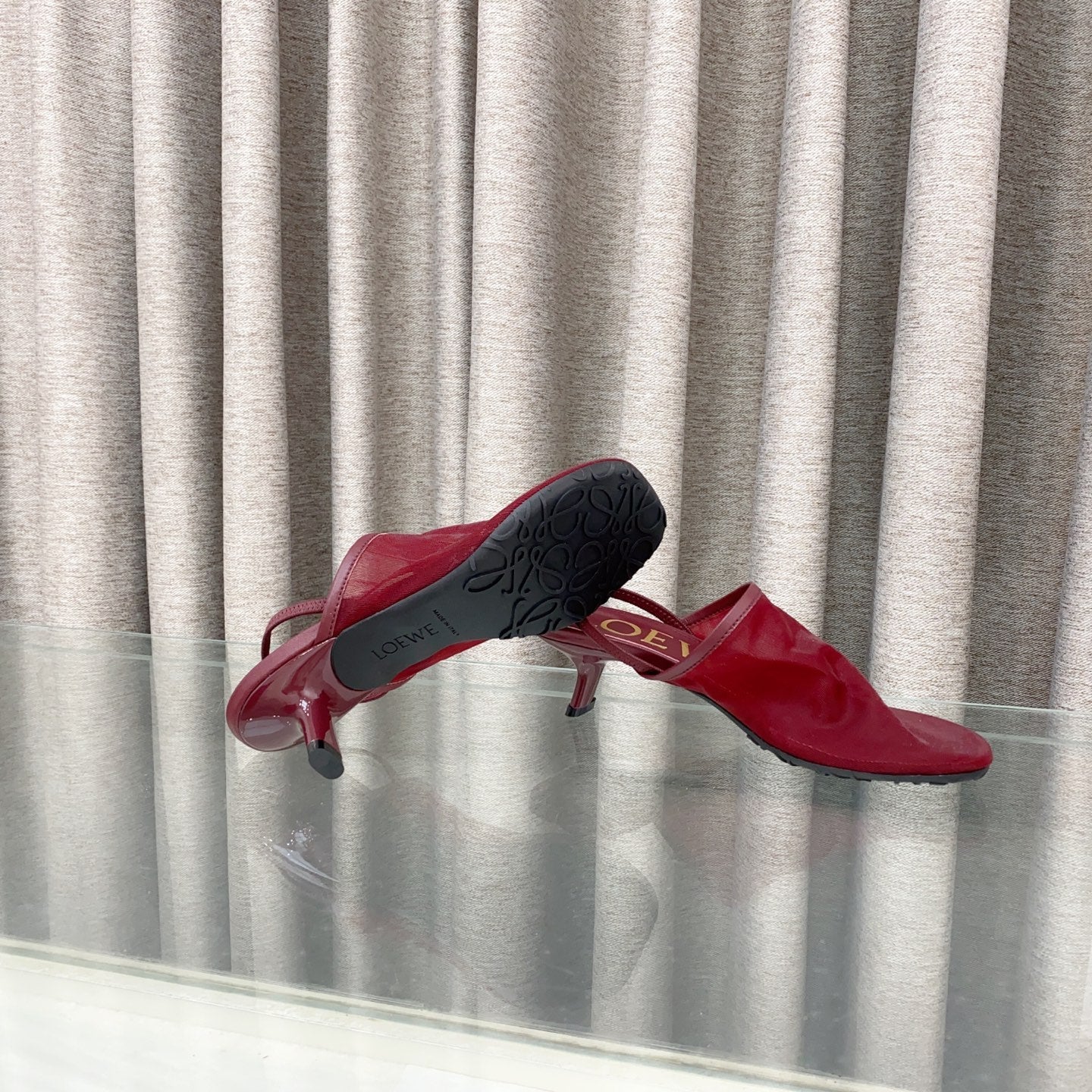 Loewe 25 Petal Slingback Red Mesh Sheepskin