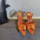 LOLA HIGH SANDALS IN TANGELO ORANGE SMOOTH LAMBSKIN AND DRAPED JERSEY