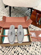 Loro Piana Grey Black Suede Charms Walk Flat Mules