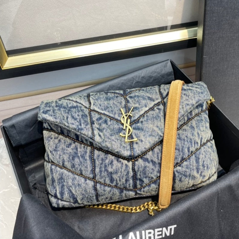 LOULOU PUFFER MINI 23 RODEO BLUE SUEDE DENIM