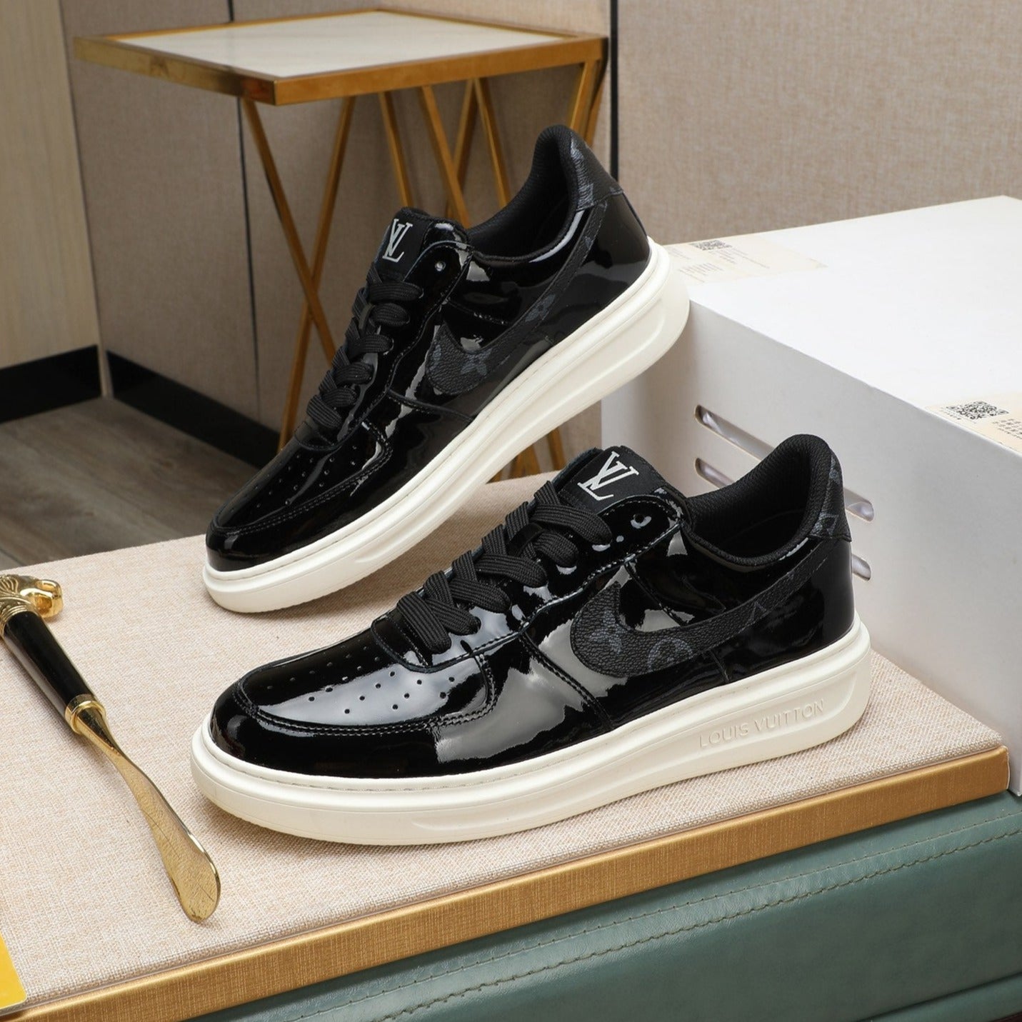 LV AIR FORCE 1 GLOSSY BLACK CALFSKIN WITH MONOGRAM LOGO