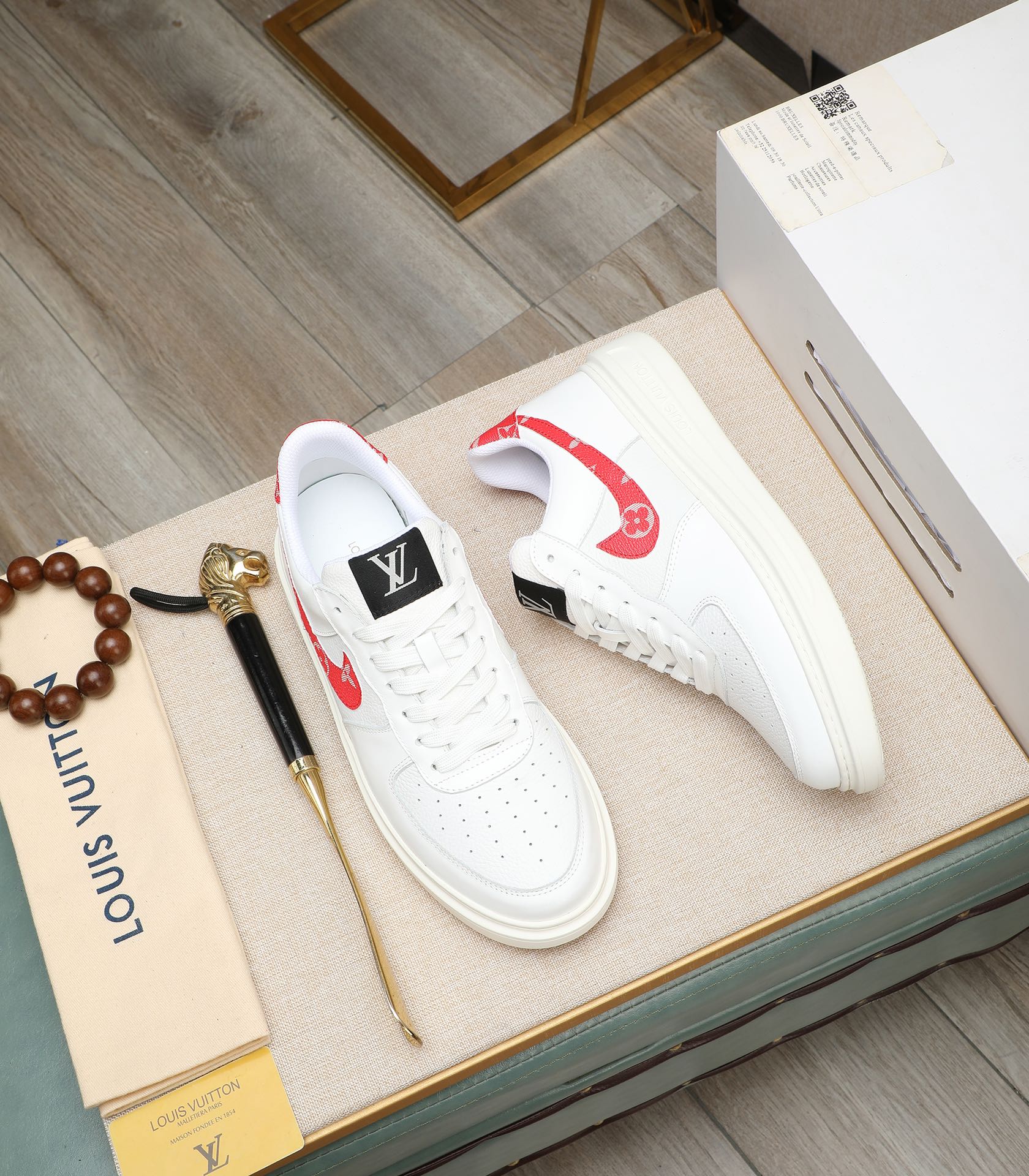 LV AIR FORCE 1 GLOSSY WHITE CALFSKIN WITH RED MONOGRAM LOGO