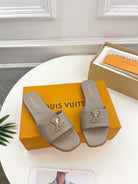 lv capri flat mule grey calfskin