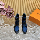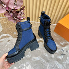 LV Laureate Platform Desert Boot 70mm Dark Blue Denim Fabric