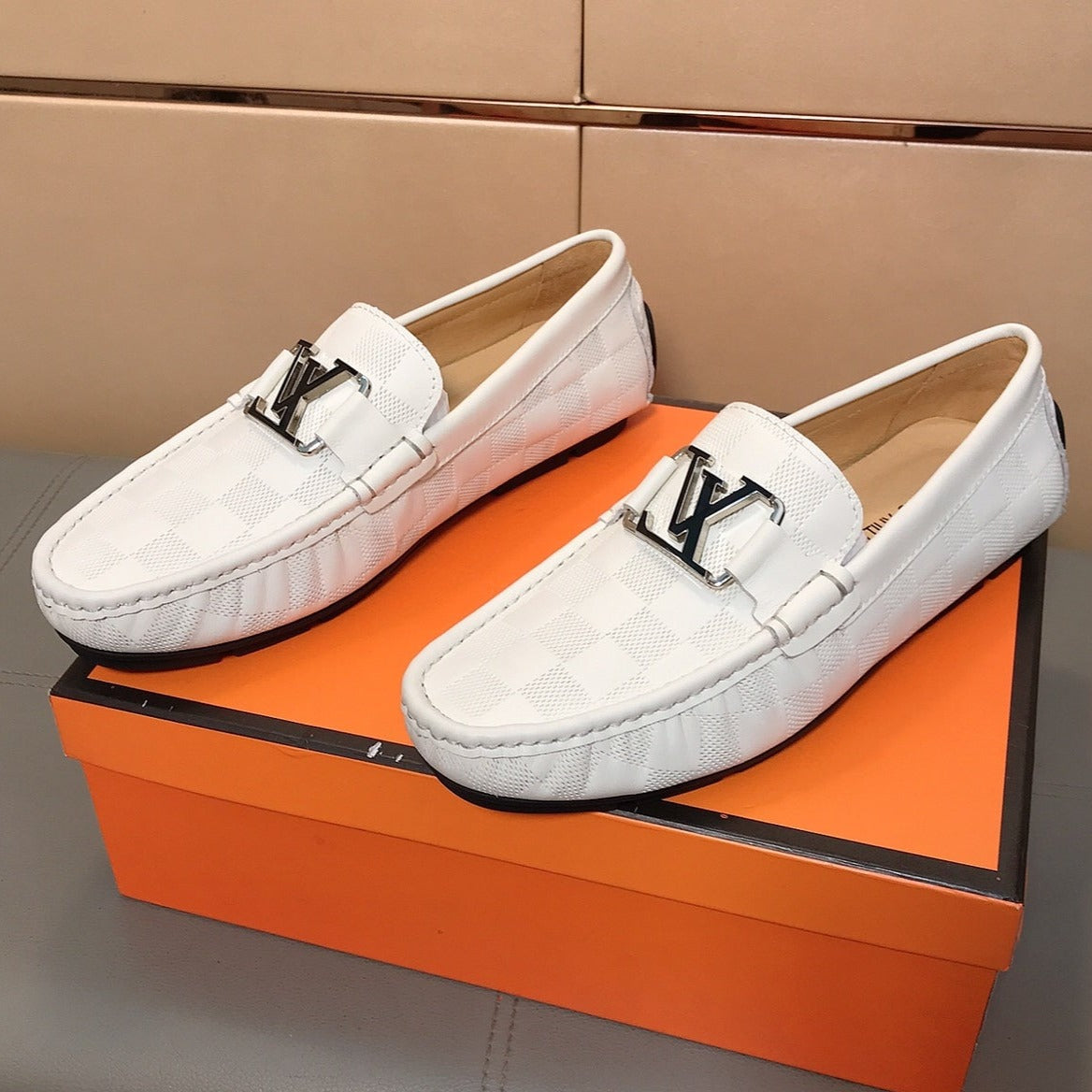 LV LOAFERS IN WHITE DAMIER CALFSKIN